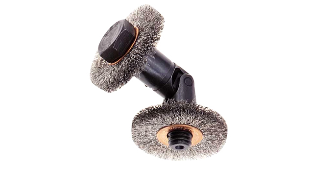 These tools consist of 4 stainless steel circular brushes that are mounted on a shaft and connected to a Universal Joint. These tools are used to clean soft to medium scales. Replacement circular brushes can be ordered when wear starts.